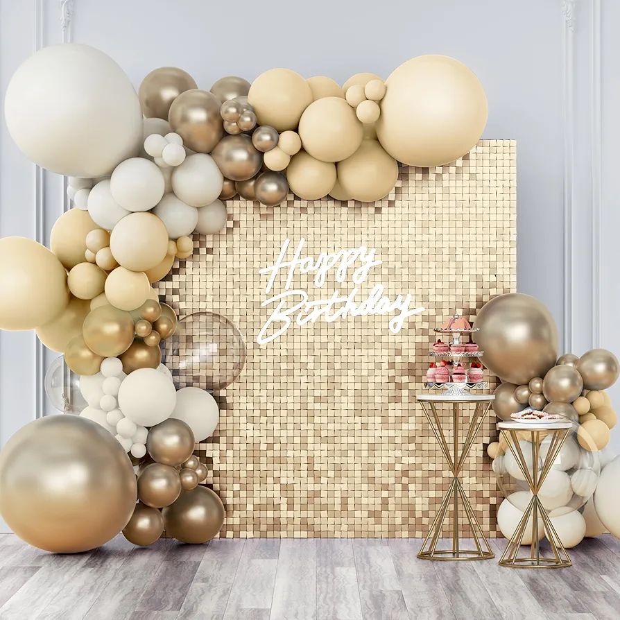 Esta pared dorada de fiesta es una decoración impresionante y llamativa que añade un toque de lujo y glamour a cualquier evento.